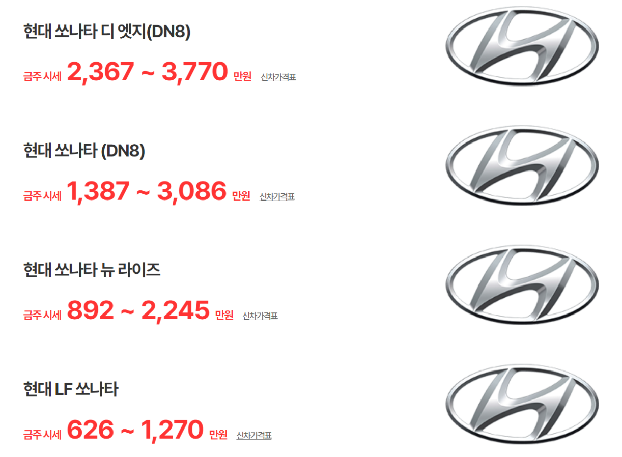 현대 쏘나타 중고차 가격