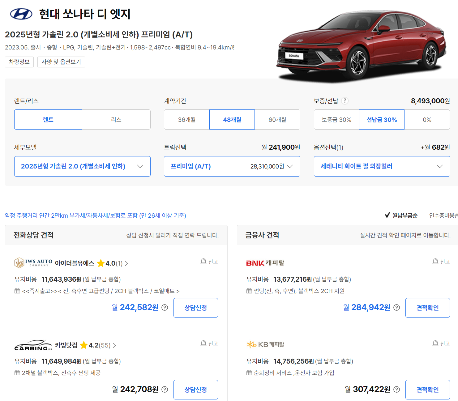 쏘나타 장기렌트 가격