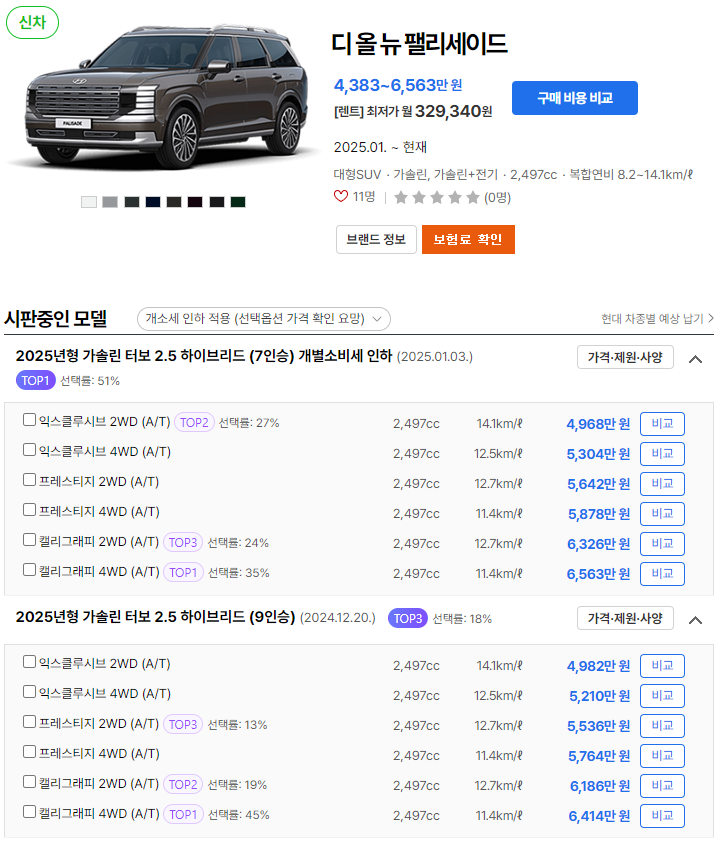 팰리세이드 장기렌트 가격